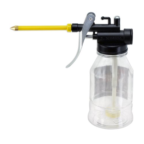 - Oil can with built-in pressure pump to get oil at hard-to-reach areas - shoots oil over 6'