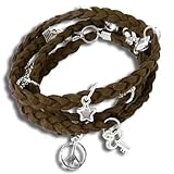 Heirloom Finds , This trendy dark brown charm wrist wrap can also be worn as a necklace. Featuring 11 silver tone charms including: peace sign charm, star charm, heart charm, clear crystal charm, key charm, and cross charm. Wrap several times around your wrist or wear it as a necklace. This is one of the season's hottest looks. The faux suede bracelet is dark brown, braided in design, and super-soft and comfortable. Measuring 27" long with a 3"extender, it will wrap around your wrist several times. Your bracelet will arrive in a gift box ready for giving or for treating yourself. ...