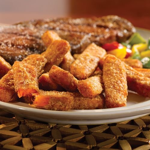 Omaha Steaks 1 24, Our Sweet Potato Steak Fries are a taste explosion! These sweet, wholesome fries are lightly battered in a chipotle and onion mix that adds zing while complementing their fresh sweet potato flavor. The perfect alternative to boring old French Fries ... serve them with steaks, burgers, chicken or pork. An Omaha Steaks exclusive, you won't find these anywhere else! Bake and serve. 6-8 servings per package.