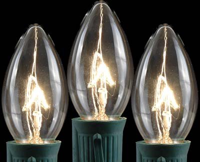 Novelty Lights, Inc., These Random Clear Twinkle C9 Replacement Bulbs will create a shimmering glow in your holiday display this season. Perfect to use in outdoor trees, they can be mixed with static burning bulbs for a fun lighting effect. These 7 watt, 130 volt clear bulbs will blink on and off for 3000 hours and have nickle-coated bases to prevent corrosion. Candelabra base (E17) 3" tall and 1 1/4" wide. Use with our Green or White wire 25' or 100' C9 stringers (sold separately). Also, works great with our 1,000' C9 bulk reels (sold separately).