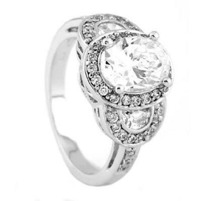 Lgu , This is magnificent quality past, present, future theme style oval center combined with moon shape cubic zirconia ring. Faceted cut cubic zirconia on this ring creates extra shimmer and sparkles which is comparable to real Vs quality Diamond. Center stone in this ring is prong set and the rest of the stones are channel set. This ring has the finest white gold look and finish. What is rhodium plated silver? Naturally polished sterling silver is very white and brilliant. Although as the surface wears it will no longer be smooth and it will become dull. Rhodium plated sterling silver will retain it's original appearance longer than a natural sterling silver. Rhodium is related to platinum. This is silver-white in color almost look like stainless steel color or white gold color, which resistant to tarnish and other forms of corrosion, like body acids. It is used in sterling silver and white gold jewelry primarily as a hard protective plating. However, this plating is not invincible that it will eventually wear off as time goes by. The best way to protect it is to keep it away from the acids and chemicals you encounter in your daily life. How to take care of Rhodium Plated Sterling Silver? Take off your rhodium plated rings as you wash hands, shower, exercise, any house works and as you sleep. Apply lotions and perfumes before you put on your jewelry, because the chemicals in these products can help erode the rhodium plating over times. You want to be sure the products have completely dried on your skin before you put your rhodium plated ring back on.
